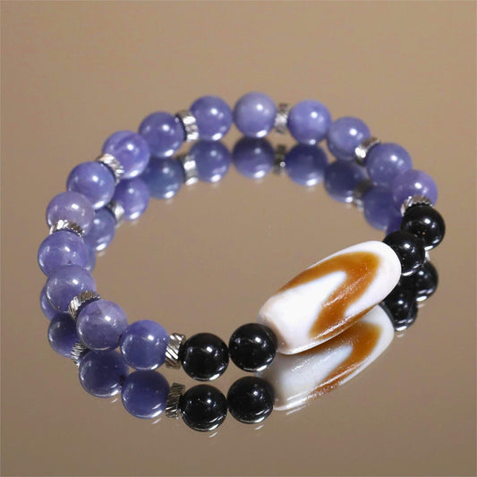 Tanzanite + Tiger Tooth Dzi Bracelet - The Celestial Fang